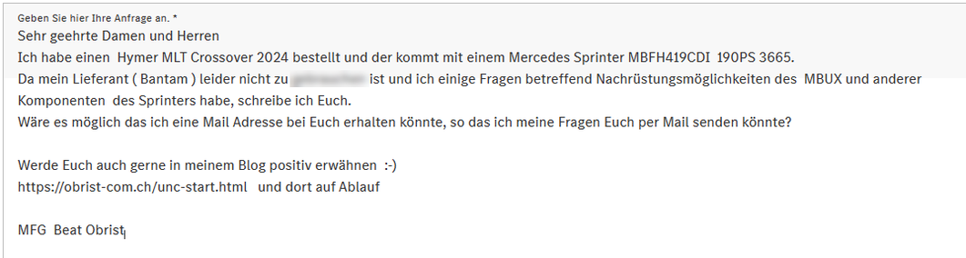 Deshalb habe ich mich über das Kontaktformular an MBS gewandt: