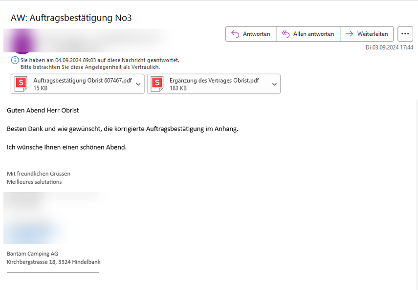 Warum der nicht voll umfänglich in die neue Auftragsbestätigung vom 3.9.2024 eingeflossen ist, weiss leider niemand.