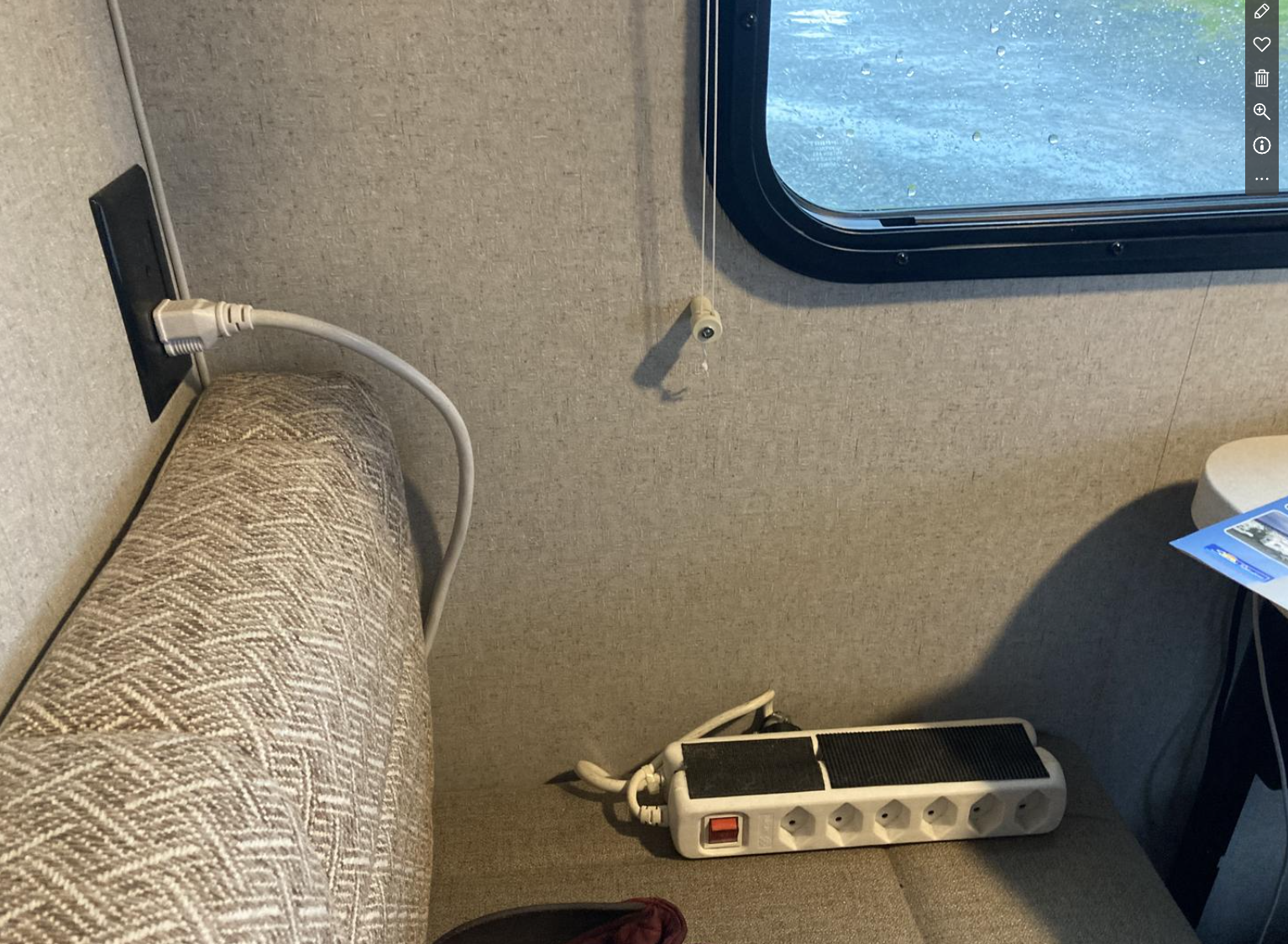 Sobald der Anschluss hergestellt ist, gibt es an einigen Stellen im Camper Steckdosen mit 110V.