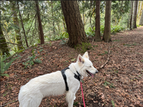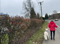 Um 7:45 Uhr gingen Doris und Queeny spazieren. Es war bewölkt, aber es regnete nicht.
