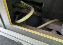 Also fuhren wir mit Berts Wagen nach Galliano Süd zum Hardware Store. Wir kauften noch Fenster-Schaum und einen Fahrzeugstecker. Als wir zurückkamen, machte ich mich wieder an die Arbeit und machte den hinteren Giebel. Beim vorderen lief mir der Schaum davon (es war zu sonnig), sodass ich abbrechen musste.