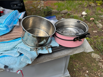 Es begann zu regnen, also ging ich in den Wagen. Zum Abendessen machte Doris Kartoffel- und Mais-Salat, dazu aßen wir noch etwas Corned Beef. Nach dem Essen sprachen wir noch mit Hansjörg und Kathy Gugger per Facetime. Wir werden uns melden, wenn wir wieder nach Campbell River kommen.