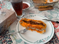 Bert machte zum Mittag für mich einen Hamburger und für die anderen gab es Bienenstich.