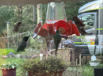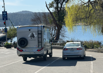 Dann fuhren wir zum ersten Campground, aber den fanden wir nicht. Der zweite war geschlossen. Dann fuhren wir Richtung Marple Bay, aber auch dort war alles noch geschlossen. Dann fuhren wir etwas der Küste entlang und kamen nach Chemanus, wo es angeblich einen Campingplatz im Hafengebiet geben sollte. Aber an der Stelle, wo er sein sollte, waren alte Eisenbahnwaggons abgestellt. Der nächste, den wir besuchten, gehörte zur Riverside-Gruppe, und das wollten wir nicht schon wieder antun. Also fuhren wir nach Nanaimo, zuerst zu Walmart, um uns eine 7,5-kg-Hundefutterpackung zu holen. Danach fuhren wir zum Westwood Lake Campground (da waren wir schon dreimal).
