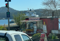 Aber alle Fähren hatten Verspätung. Die Fähre, die um 11:00 Uhr fahren sollte, fuhr um 11:40 Uhr, und unsere Fähre, die um 11:55 Uhr fahren sollte, fuhr um 12:30 Uhr. Aber wir konnten uns die Zeit gut vertreiben, da das Café, der Lebensmittelladen und das Souvenirgeschäft zwei Minuten vom Hafen entfernt waren.
