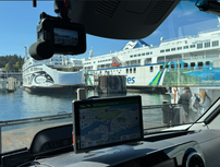 Auch an diesem Morgen ging Doris mit Queeny spazieren, wie sie es jeden Morgen tat. Währenddessen machte ich den Wagen startklar, prüfte den Luftdruck und fuhr ihn in die Auffahrt. Als Doris kam, verabschiedeten wir uns von Bert und Irene und fuhren Richtung Studies Bay. Als wir am Hafen ankamen, konnten wir uns in Linie 6 einreihen. Die Überfahrt ist kostenlos, denn man bezahlt immer von Vancouver Island nach Galliano Island und zurück. Außer man fährt von Galliano nach Vancouver, dann kostet es separat.