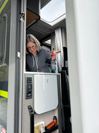 Nach dem Bezug des Platzes fing Doris mit dem Waschen an. Während ich noch zwei Kabel löste.