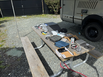 Nach dem Morgenspaziergang frühstückten wir. Danach kontrollierten wir die Boxen und stellten eine Liste mit den fehlenden Dingen zusammen. Am Nachmittag ging ich duschen, während Doris mit Queeny am Strand spielte. Danach begann ich, die neuen Innenraumkameras zu programmieren. Als das erledigt war, fing ich an, das neue Reifendruckgerät einzustellen. Morgen werde ich das Teil fertigstellen und die neuen Sensoren installieren.