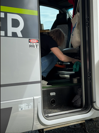 Nach dem Spaziergang mit Doris und Queeny gab es Morgenessen. Danach fing ich an, die Boxen in der „Garage” des Hymers auszuräumen, bis Bert kam. Dann begannen wir mit der Reinigung der beiden Dächer und waren nach etwa zwei Stunden fertig. Danach machte ich mit meinem Fahrzeug weiter. Ich baute das neue Regelsystem fürs Wasser ein und machte anschließend den Auszug fertig. Danach baute ich unsere neue Hundebox zusammen und fixierte sie. Als alles fertig war, war es schon 18 Uhr und bald darauf gingen wir zum Abendessen. Heute gab es „Soft“ Tacos. (Anstelle von Tacos nahm er Tortillas.) Die waren ausgezeichnet.