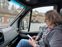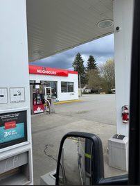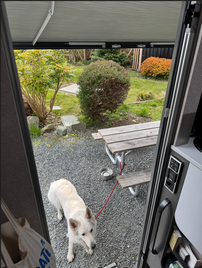 Nach Doris' Spaziergang „Rund um den See” machten wir das Auto startklar und fuhren um 10:15 Uhr los. Um 11:00 Uhr legten wir an einem Rastplatz eine Pause ein, da wir einen Videoanruf mit Frank und Corinna hatten. Um 12:30 Uhr fuhren wir weiter Richtung Campbell River. Nach etwa anderthalb Stunden machten wir an einem Rastplatz Halt. Doris ging mit Queeny raus und ich schaute mir die Infotafeln an. Nach 20 Minuten ging es weiter. Nach einer knappen Stunde waren wir in Campbell River und fuhren zuerst zum Provinzpark Elk Falls. Die neuen Preise waren schon publiziert: Früher zahlten wir 20 $, neu 32 $ plus 5 $ für Nicht-BC-Residenten. Danach fuhren wir zum Walmart, da wir ein Zeckenmittel brauchten, da das alte anscheinend nicht mehr wirkte. Aber wir fanden nichts Gescheites, also fuhren wir zum Canada Tire. Dort fanden wir ein Mittel für einen Monat.