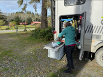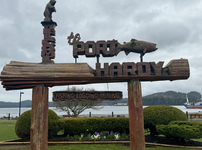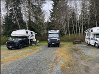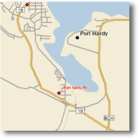 Dann fuhren wir los Richtung Port Hardy. Nach zwei Stunden machten wir auf einem Rastplatz Mittagspause. Nach einer halben Stunde fuhren wir weiter und kamen um 15:45 Uhr in Port Hardy an. Wir fuhren zuerst in die Stadt und tranken in einem Café am Stadtpark einen Kaffee. Danach fuhren wir zum Port Hardy RV Campground, den wir noch aus dem letzten Jahr kannten.