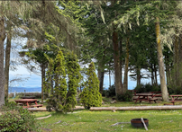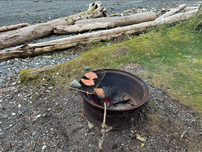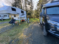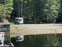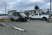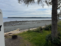 Nach dem Spaziergang frühstückten wir. Um 10:30 Uhr fuhren wir vom Port Hardy RV los und fuhren Richtung Port McNeil. Das Cluxewe Resort befindet sich fünf Kilometer vor Port McNeil. Wir waren schon zweimal letztes Jahr dort, aber im Moment ist der hintere Teil geschlossen, da das Wasser immer noch nicht trinkbar ist. Also suchten wir uns einen Platz im vorderen Teil mit Meerblick.