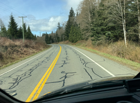 Im letzten Drittel (Vor Gold River) merkte man das die Strasse für den Transport nicht mehr gebraucht wurde, die hatte tonnenweise schlaglöcher und war sehr mühsam zu befahren . Auf der ganzen Strecke hatten wir ein einziges Fahrzeug das uns entgegenkam.
