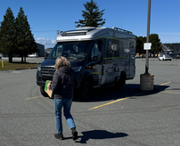 Nach dem Frühstück hatten wir unser wöchentliches Videogespräch mit Frank und Corinna (oH). Danach machten wir uns auf den Weg nach Port McNeill. Das Städtchen gliedert sich um den Hafen und die Läden. Wir gingen in den IGA-Markt und kauften noch einige Lebensmittel ein. Danach besuchten wir den Hardware Store. Wir mussten noch etwas für die Reinigung des Abflusses der Küchenspüle finden und etwas, um die Teigwaren besser zu schöpfen. Wir fanden eine Saugglocke und einen Schöpflöffel ( von Zilyss)