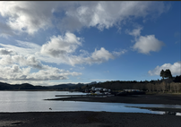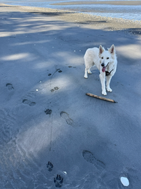 Heute Morgen war es bewölkt und das Meer hatte sich noch weiter zurückgezogen. Aber es sah so aus, als stünde die Flut kurz bevor. Doris war mit Queeny im Dogpark, wo sie sich total verausgaben konnte. Als sie zurückkamen, wollte sie nur noch ihr Essen und ging anschließend schlafen. :-)