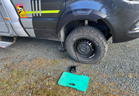 Nach dem Spaziergang ass Doris ihr Frühstück und telefonierte noch mit Hanni Obrist. Währenddessen versorgte ich die Elektro- und Wasseranschlüsse in den entsprechenden Boxen. Anschliessend habe ich die Reifen erneut aufgepumpt und das Reifendruckgerät neu programmiert. Schlussendlich stellte sich heraus, dass zwei Batterien in den Sensoren alt waren und ausgewechselt werden mussten.
