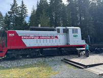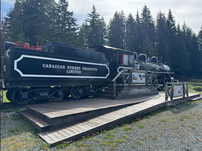 Dort sahen uns die Lokomotiven der Baumfäller an. Heute wird alles mit Lastwagen oder mit flössen Transportiert und die Eisenbahn bracht es nicht mehr.