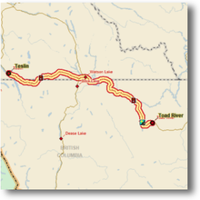 Um 8 Uhr fuhren wir in Teslin ab und wollten bis Liard fahren (es gibt dort heiße Quellen).