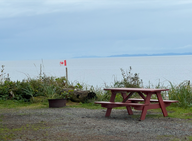 Der Provinzielle Park wäre noch offen gewesen, aber wir wollten wieder einmal duschen. Also fuhren wir weiter Richtung Courtenay. Dort angekommen, suchten wir den ersten Campingplatz auf, aber er sah nicht so sauber aus. Darum fuhren wir einen Kilometer weiter zum zweiten. Der gefiel uns viel besser und wir nahmen einen Platz dort. Nach dem Duschen machte Doris das Abendessen und danach die Hundeportionen.
