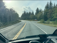 Um 07:30 Uhr war der Nebel ziemlich dicht und das Nebelhorn hupte dauernd. Das Nieseln hatte sich gelegt, aber es gab große Wasserpfützen um das Auto herum.