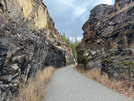 Doris war am Morgen wieder im Hundepark und kam um 10:15 Uhr zurück. Zuerst frühstücken wir, dann gingen wir zum Campground Office. Wir können bis Donnerstagmorgen bleiben. Donna gab uns einen Ausflugstipp. Sie sagte, wir sollen den Myra Canyon besuchen. Auf den alten Gleisen wurden ein Fahrrad- und Spazierweg gebaut.