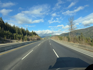 Wir kamen bis auf 1800 m hoch und die Umgebungstemperatur fiel auf -2 Grad. Plötzlich hatten wir auch Schnee am Straßenrand. Die Straße führte uns über das Hochplateau und war eine sehr spannende Route. Nach Aspen Grove ging es wieder bergab und auch die Temperaturen pendelten sich wieder im Plusbereich ein.