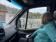 Heute Morgen mussten wir früh aufstehen, da wir um 7:45 Uhr bei Mercedes-Benz Kelowna sein mussten. Wir waren schon früher da und konnten den Wagen um 08:00 Uhr abgeben. Ich durfte im Wagen warten, nachdem ich mit dem Werkstattchef Tobias gesprochen hatte. Um 08:45 Uhr kam Christian. Er war Servicetechniker bei MB und früher in Deutschland bei Hymer. Er kam mit einem Analysegerät. Dann fuhr er mit dem Hymer in die Werkstatt und ich durfte im Warteraum warten. Dann kam Doris vom Spaziergang zurück und wir warteten bis 10:05 Uhr. Dann kam Christian und teilte uns mit, dass ohne neue Halterung für den Radar keine Funktion möglich sei. Es wäre aufwendig, das Ganze auf die alte Halterung zu programmieren (etwa drei Stunden), und es gäbe keine Garantie. Das gleiche sei in Nanaimo passiert, da der Sensor unten nicht fest fixiert worden sei und sich so nach kurzer Zeit verstellt habe.