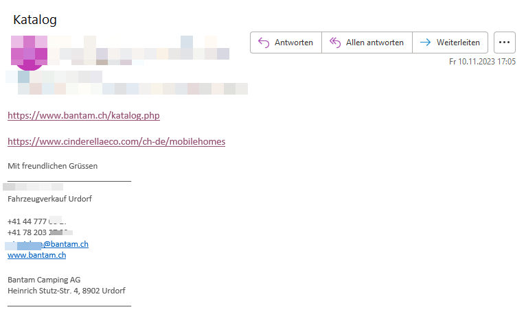 Um 17.05 Uhr erhielt ich dann endlich den Link zur Gesamtübersicht aller Kataloge und den Link zur Cinderella Verbrennungstoilette.