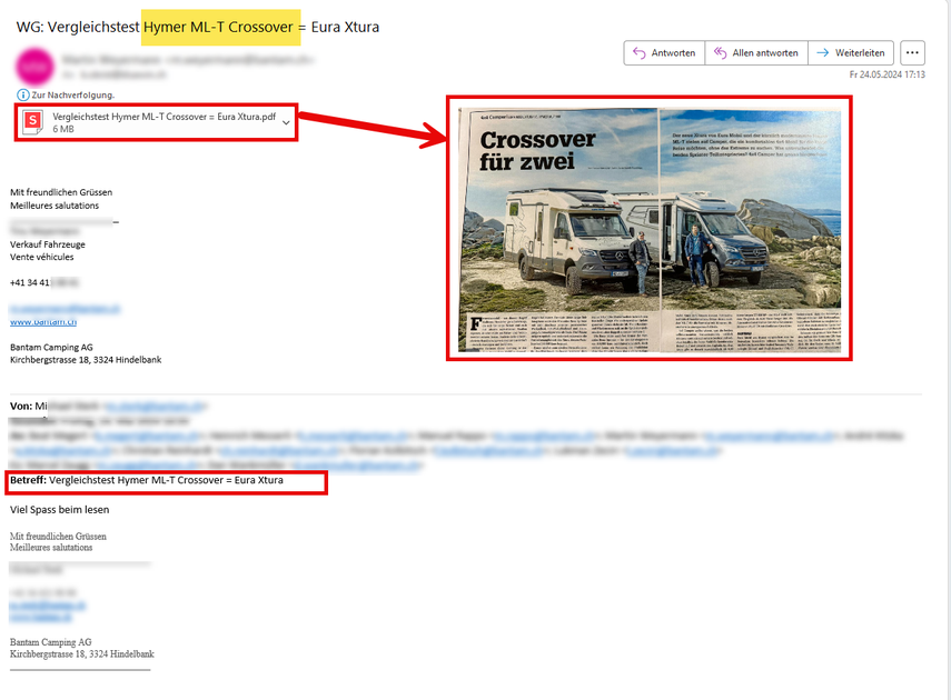 Das was ich unter komisch verstehe, ist das man unter MLT Crossover sicher keinen MLT 580 versteht. Das Mail mit dem "Vergleich" erhielt VL** von seinem Vorgesetzten unter dem Titel "Vergleichstest Hymer ML-T Crossover = Eura Xtura". Das hätten die Leute vom Fach bei Bantam eigentlich merken müssen!