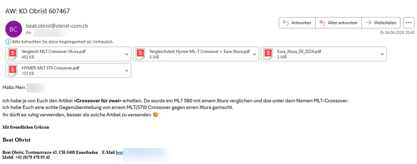 "echten" Vergleich MLT Crossover - Xtura gemacht und den dann auch an Bantam gesendet.