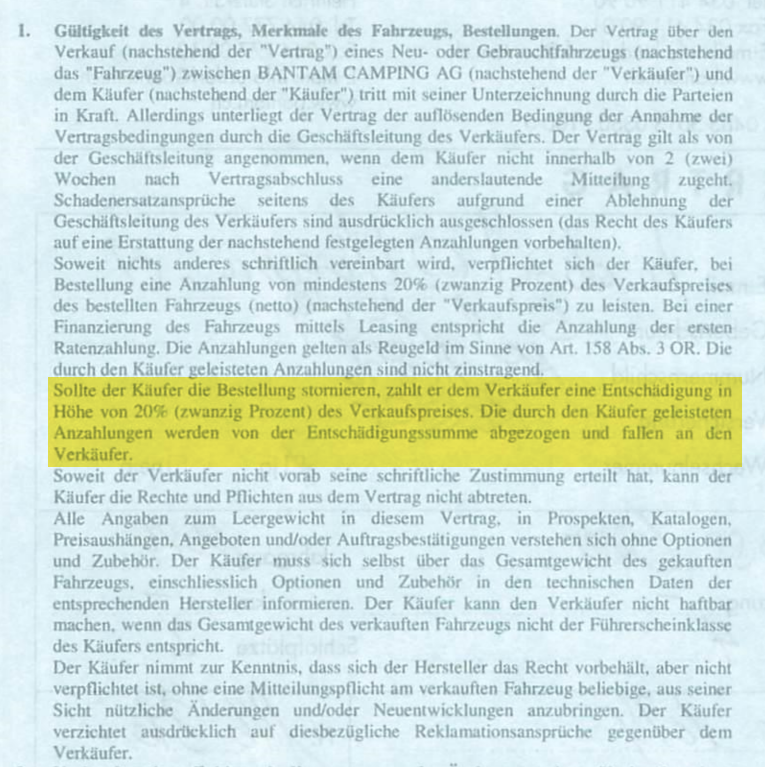 Punkt 1. Da heisst es ganz klar das du bei Annulation dein Anzahlung von 20% verlierst.