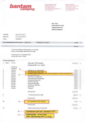 5. Wir haben abgemacht mit Herr XY das der Liefertermin der 30.10.2024 ab Werk sei. Bis das Fahrzeug in Hindelbank ist und Vorgeführt, geht es sicher noch 15-30 Tage. Aber man vergisst das lieber.