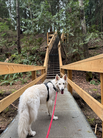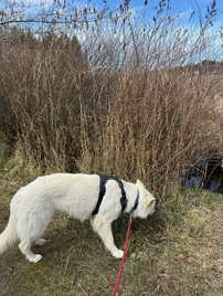 Um 7:45 Uhr gingen Doris und Queeny spazieren. Es war bewölkt, aber es regnete nicht.
