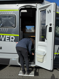 Heute Morgen haben wir damit begonnen, alles, was wir nicht mehr brauchen, im Wagen zu verstauen. Ich wollte eigentlich noch das neue Starlink-Kabel einbauen, aber es war sehr kühl und der Himmel war grau. Um 11 Uhr fing es stark an zu regnen und hörte erst um 14:30 Uhr auf.
