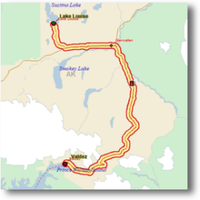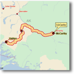 Lake Louise (Glennallen) – Valdez 174 mi / 265 km