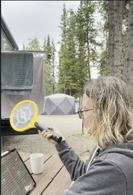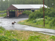 Kurz vor dem Grenzübergang haben wir noch einiges Gemüse vernichtet, was aber eigentlich gar nicht nötig war. Wir mussten nur kurz ins Zollgebäude, um ein Foto zu machen und die Fingerabdrücke zu nehmen. Dann war alles erledigt und nicht einmal der Hund machte Probleme! 😊Nach dem Zoll machten wir bei Tetlin Wildlive Reserve noch eine kleine Pause und kauften für Lenny ( Enkel) einen Plüsch - Schwarzbären.