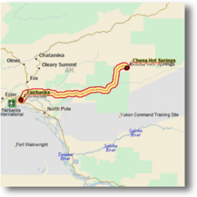 Chena Hot Springs - Fairbanks 67 mi / 108 km