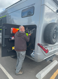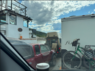 Danach ging es weiter bis zur Fähre, wo wir etwas warten mussten. Als wir auf der anderen Seite waren, gingen wir zum Campingplatz und holten unseren Platz. Etwas später fuhren wir zum Waschplatz, wo wir den Wagen etwas reinigten und den Gasvorrat auffüllten.