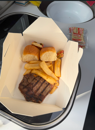 Sie aß Halibutt und ich nahm ein Ribeye-Steak. Aber das Fleisch und die Pommes waren zu viel für mich. Die Amis haben überhaupt keine Probleme damit, wenn du den Rest in einer Box mitnimmst.