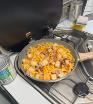Wir aßen das Abendessen, das wir aus den Resten von Fast Eddy zubereitet hatten, dazu gab es etwas zum Dippen.