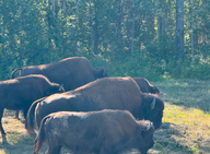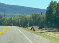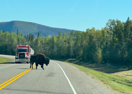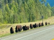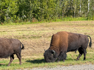 Ab der Grenze zu British Columbia kam nach 30 km das Warnzeichen „Bison” und keine 10 km weiter trafen wir auf die erste Herde mit etwa 50 Tieren. Nach weiteren 15 km sahen wir eine kleinere Herde mit etwa 25 Tieren.