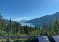 Um 12:00 Uhr hielten wir am Teslin Lake an und machten eine kleine Pause. Um 12:45 Uhr ging es dann weiter. Da wir noch waschen und duschen mussten, beschlossen wir, in Teslin auf dem Campingplatz des Yukon Motels zu bleiben. Dort konnte man gut waschen.