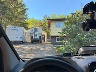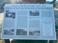 Wir fuhren nochmals auf der Suche nach einem Campingplatz 5 km zurück, aber überall war zu dieser Zeit alles weg oder reserviert. So fuhren wir weiter Richtung Fort Nelson und sahen uns etwa vier Campgrounds an, aber keiner gefiel uns wirklich. Nach etwa 45 Minuten sahen wir auf dem Garmin das Zeichen eines privaten Campgrounds. Das war die Toad River Lodge mit einem Campingplatz. Er war sehr günstig, obwohl es Strom, Wasser, Abwasser und Holz zum Feuern gab.