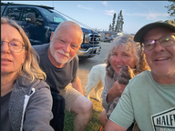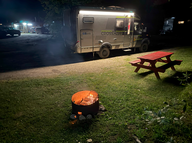 Wir trafen ein kanadisches Paar, das an seinem Platz keinen Tisch hatte, und wir hatten kein Holz. Darum machten wir einen Deal: Sie brachten etwas Holz mit und hatten noch Hühnchenfleisch und Maiskolben für den Grill. Wir machten noch Würste, etwas Fisch und Salat. Beth und Bill kamen mit ihrem jungen 4 monatigen Hund. Es war ein spannender und unterhaltsamer Abend.