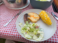 Später gab es verschiedene Bratwürste mit Kartoffelsalat und Tomaten mit Mozzarella.
