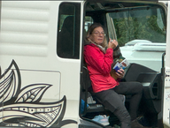 Also fuhren wir nach Port McNeil. Ein Bild für die Götter: Doris mit dem Apfelkuchen auf den Knien, da sie ihn nirgends lagern konnte, weil er noch warm war. Im Info-Center fragten wir nach, wo wir Wasser tanken könnten. Man sagte uns, dass sie selbst keinen Anschluss hätten, wir aber beim Hafen tanken könnten. Also fuhren wir dorthin und füllten unseren Tank.