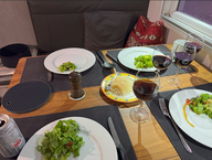 Wo wir pünktlich erschienen. Es gab Nudeln, Geschnetzeltes und Salat. Das war ein leckeres Abendessen. Es war ein interessanter letzter Abend, der dann um 23:30 Uhr endete. Morgen geht's weiter für uns beide.