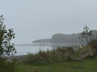 In der Nacht hörte ich ein Tuten und dachte, es käme aus unserem Wagen. Also stand ich auf und suchte im Wagen und in der Garage nach der Quelle des Geräusches. Aber es kam von draußen, es war das Nebelhorn. Es ertönte unregelmäßig und kam von der anderen Insel, vom Leuchtturm. Als es heller wurde, sah man den aufkommenden Nebel, und es regnete leicht.