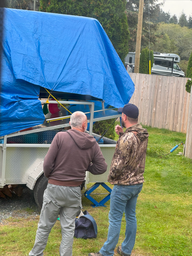 Nach dem morgendlichen Spaziergang von Doris und Queeny fuhren wir zuerst nach Port Hardy, um unsere Gasflasche bei der Co-op-Tankstelle aufzufüllen. Danach ging es zum Schuhladen vom Samstag. Doris kaufte nun auch das zweite Paar Wanderschuhe.