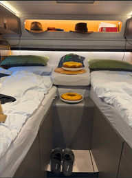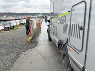 Als sie dann da waren, nahmen wir den hinteren Platz, da sein MAN doch etwas schwerer ist als unser Hymer. Wir zügelten zwei Plätze weiter.